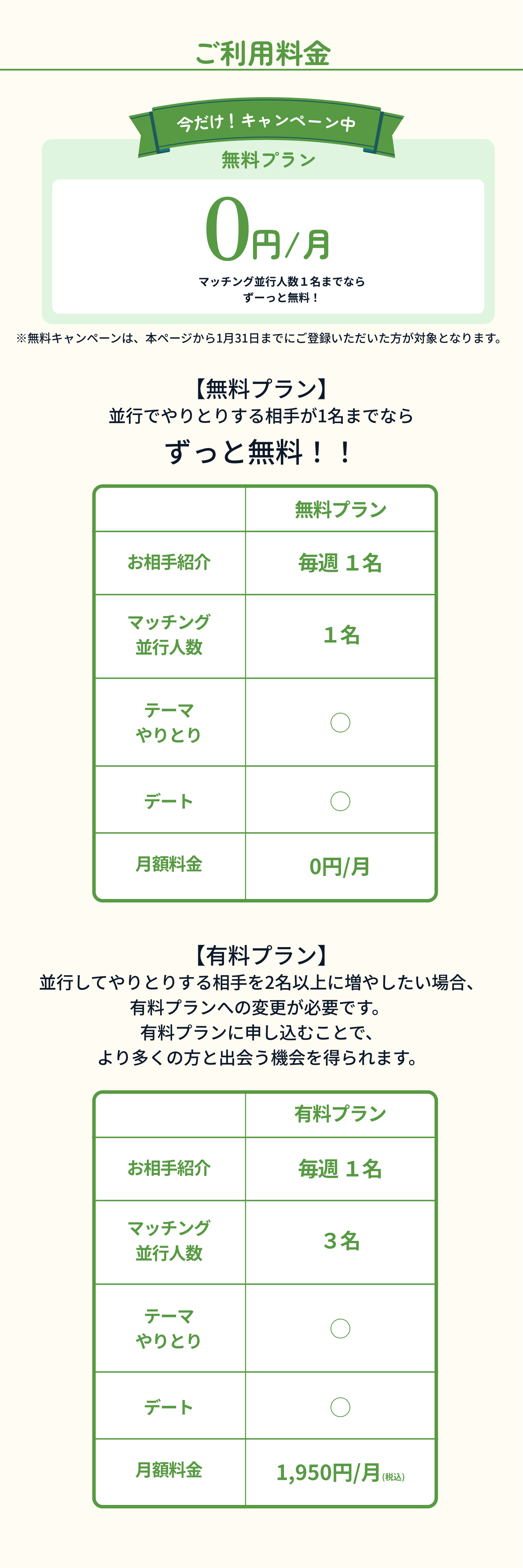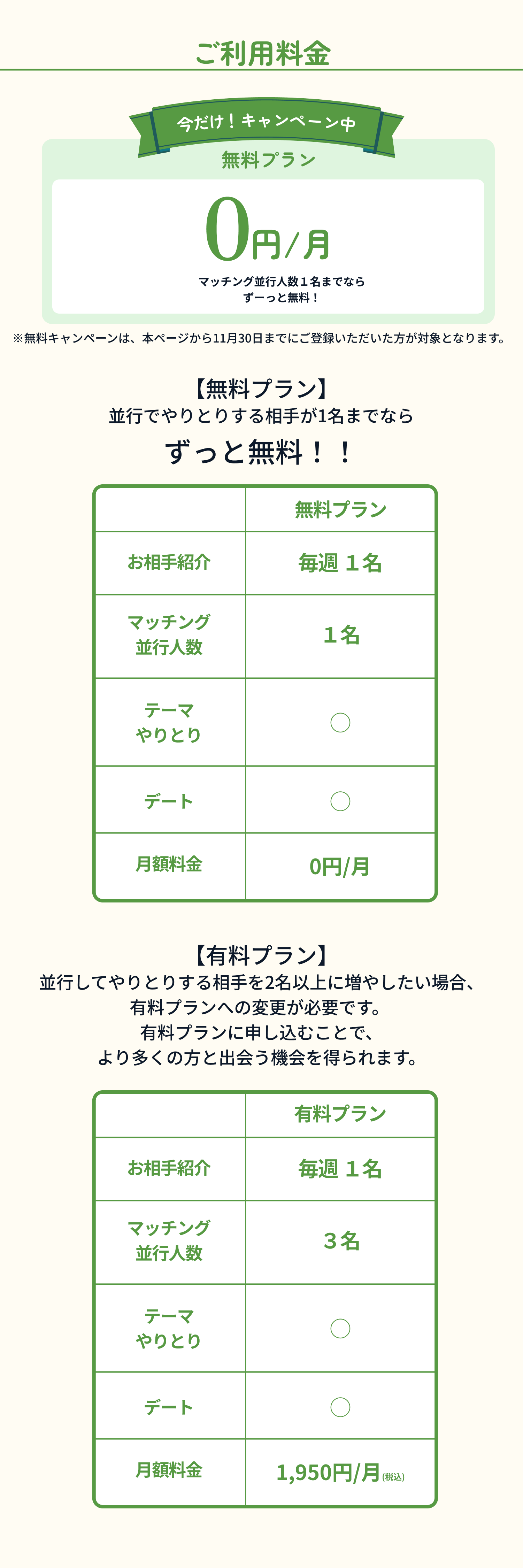 マッチング並行人数1名ずっと無料!